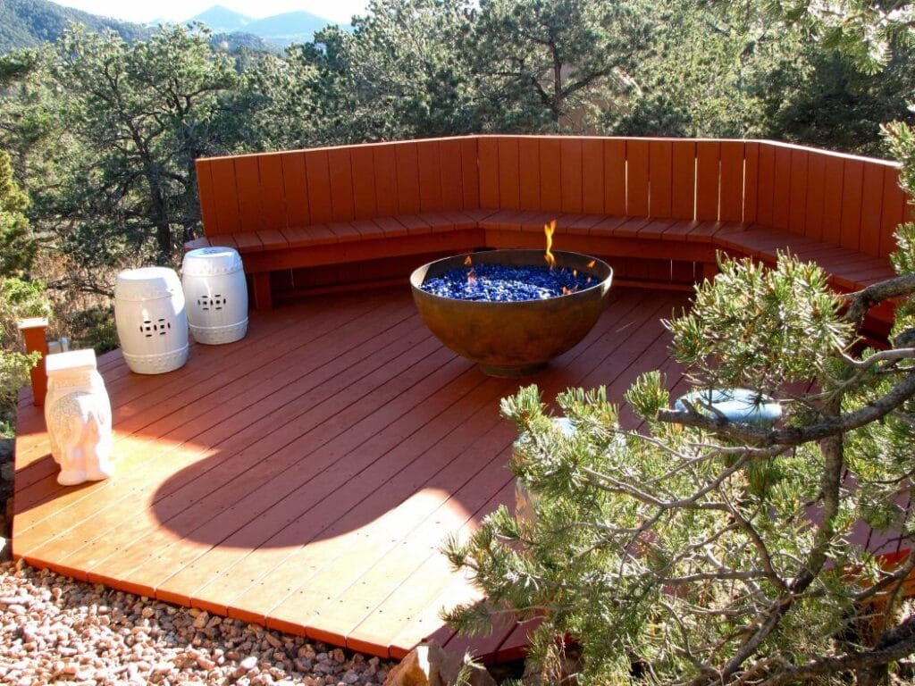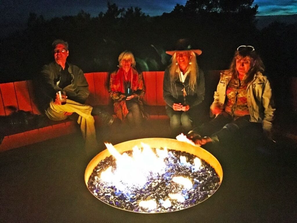 A Zen 37 inch Sculptural Fire Pit provides a meditative space on the deck of Rass Mandal, a charming boutique retreat in the mountains above Santa Fe, New Mexico. With only six bedrooms, guests and visitors are limited to no more than ten at a time, making it an ideal location for more intimate gatherings such as yoga retreats, women’s groups or small family reunions.