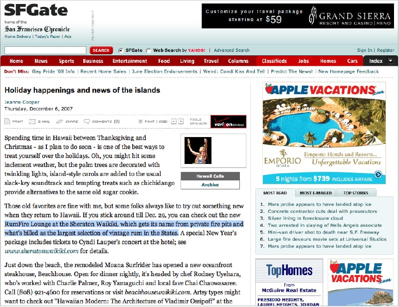 Cooper, Jeanne. “Holiday Happenings and News of the Islands.” San Francisco Chronicle 6 Dec. 2007, sec. E: 2.