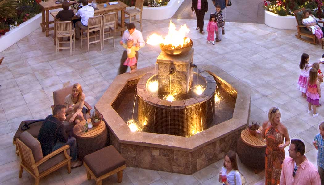 The plaza fountain at BluEmber Restaurant in Rancho Mirage, CA was one of the first to incorporate my firebowls. A Classical Ellipse Sculptural Fire Pit is the centerpiece of the multi-level masonry fountain. At night, the fire fountain provides lighting and ambiance, by day it provides a warm gathering place.