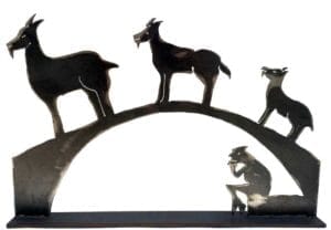 This piece can either be a table-top sculpture, or can be mounted to the wall with shelf brackets.