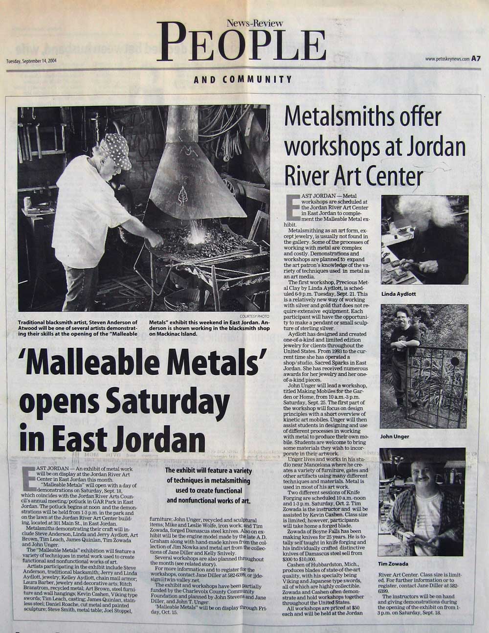 “Malleable Metals opens Saturday in East Jordan,” Petoskey News Review, Petoskey, MI, September 14, 2004, Section one, 7.