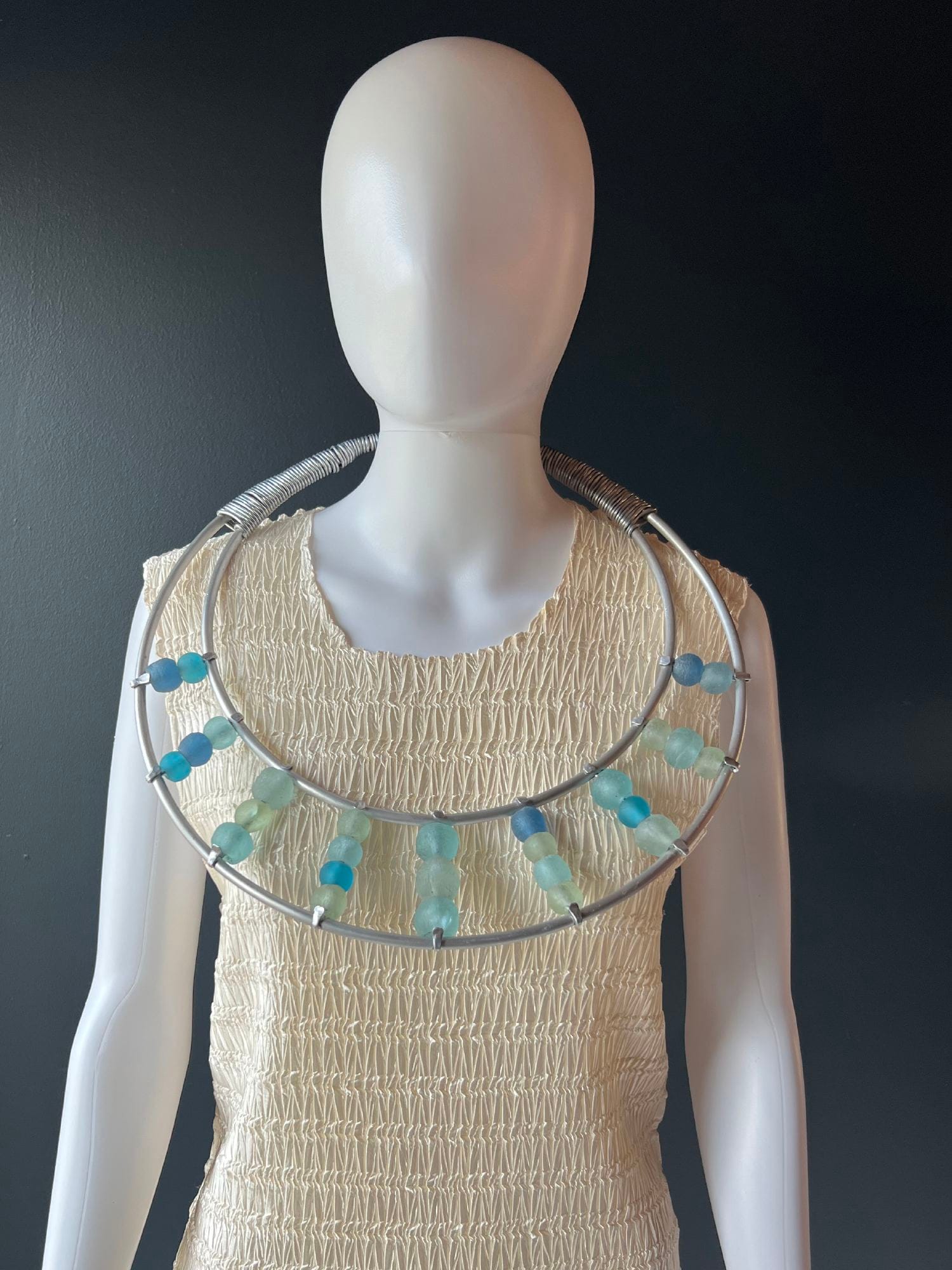 Another advantage of Aluminum is its light weight. I can do large statement pieces which are comfortable to wear because they weight so little. The same work in silver or gold would send you straight to the chiropractor.